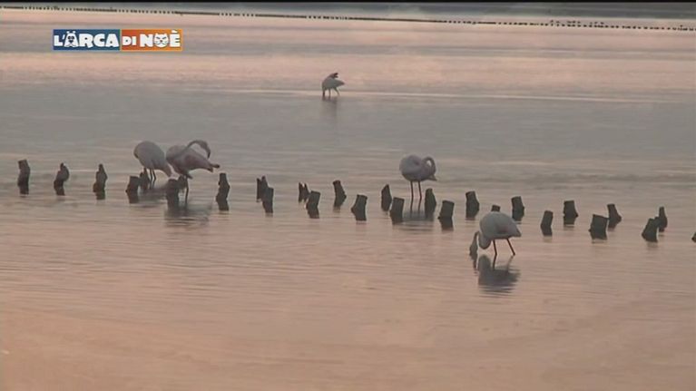 Migliaia di eleganti fenicotteri rosa hanno fatto del selvaggio parco di Molentargius, in Sardegna, il loro regno.