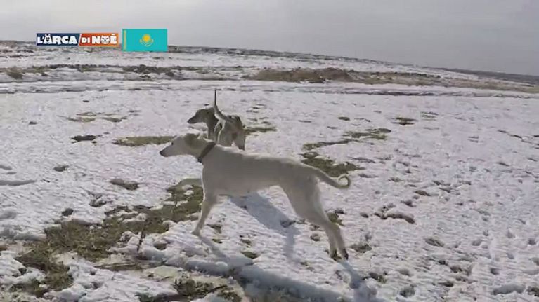 Ora andiamo nel deserto con dei levrieri, razze molto antiche ed usuali del Kazakistan, utili all'uomo per la ricerca e per l'inseguimento di animali.