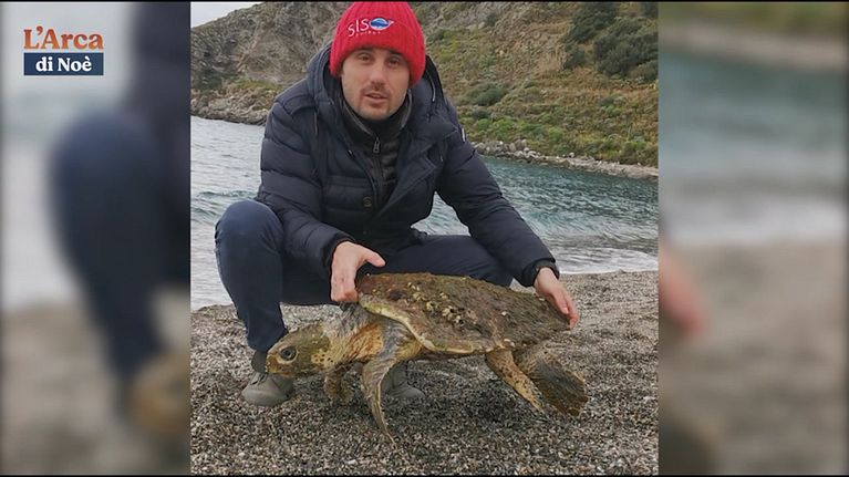 Siamo sulla spiaggia di Milazzo per salvare una tartaruga caretta caretta in difficoltà.