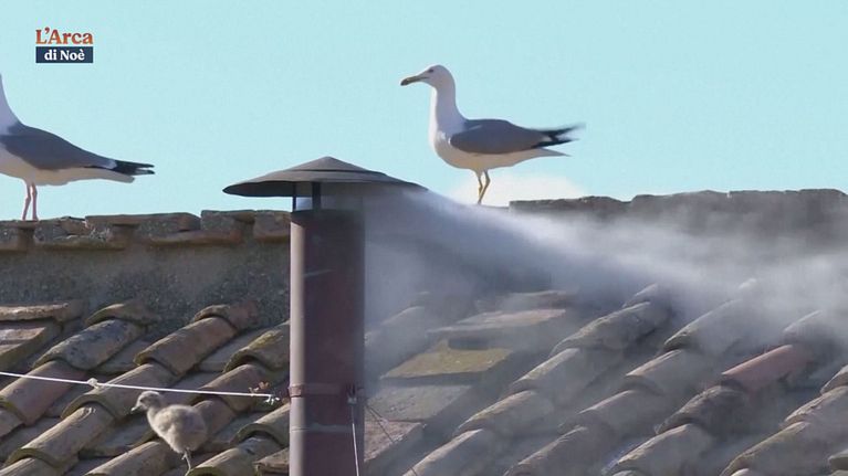 È diventata famosa sui social la famiglia di gabbiani che era vicina al comignolo della Cappella Sistina al momento della fumata bianca.