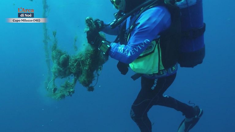 A Capo Milazzo l'operazione di recupero di una vecchia rete .