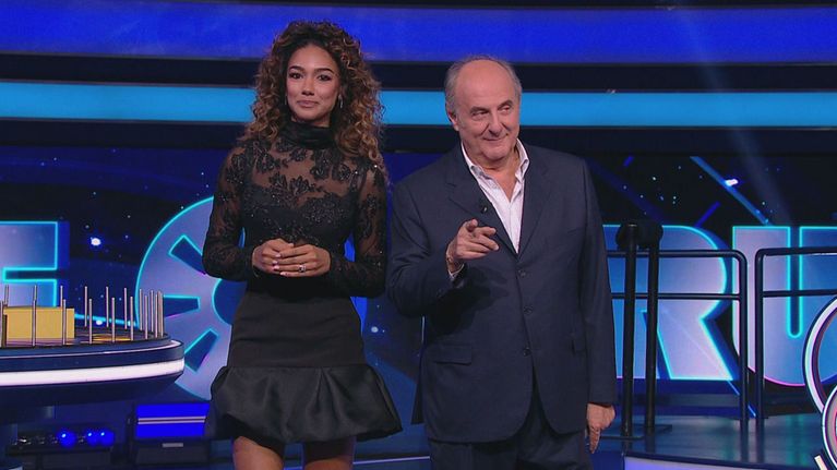 Gerry Scotti, Samira e la ruota più famosa della tv! I concorrenti devono scoprire le frasi nascoste. Serve bravura ma la fortuna ci mette del suo!