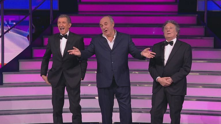 Gerry Scotti accoglie nello studio de "La Ruota della Fortuna" Ezio Greggio ed Enzo Iacchetti, pronti a tornare alla conduzione di "Striscia la Notizia".