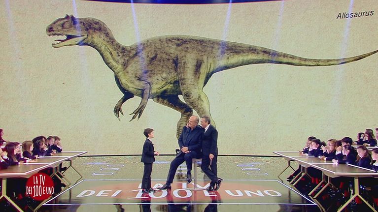 Gerry Scotti e Piero Chiambretti assistono ad una lezione sui dinosauri del nostro esperto Andrea Porzio.