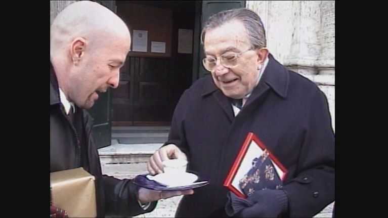 Marco Berry offre un caffè al senatore Giulio Andreotti per il suo ottantesimo compleanno