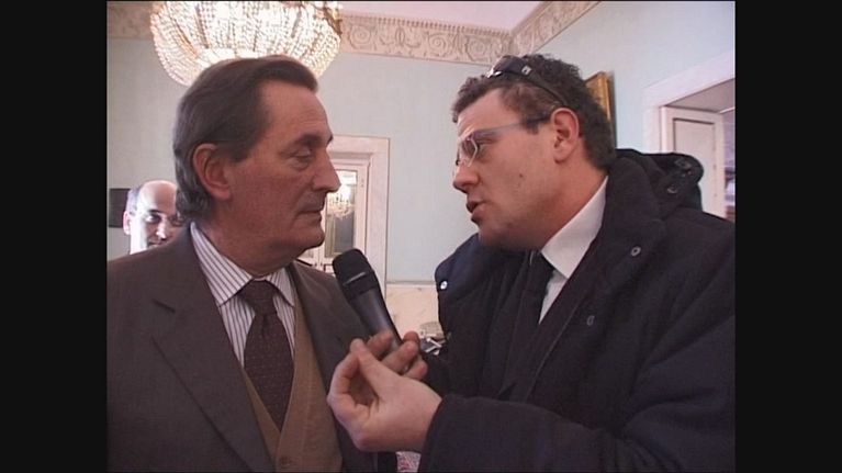 Giulio Golia incontra l'onorevole Lo Porto per le poche ore di lavoro dell'assemblea parlamentare. Gli consegnerà il calendario de Le Iene