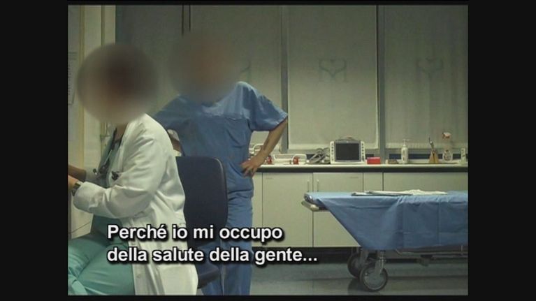 Golia con l'aiuto di due finti clandestini riprende il comportamento dei medici davanti la nuova Legge che prevede la possibilità di denunciare il clandestino che chiede soccorso