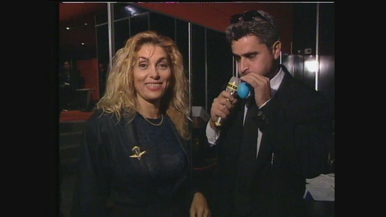 Enrico Lucci incontra l'attrice Eleonora Vallone proclamata vincitrice del "Premio Mare" per proclamarla vincitrice del "Premio Aria"
