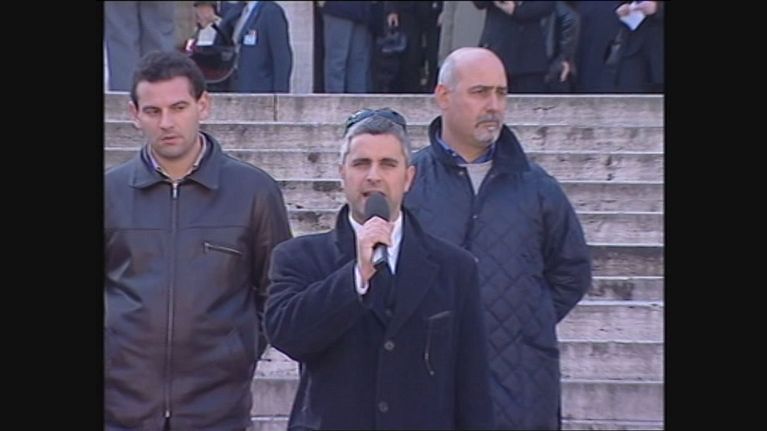 Enrico Lucci alla ricerca del Ministro Scajola per chiedere chiarimenti su una dichiarazione rilasciata