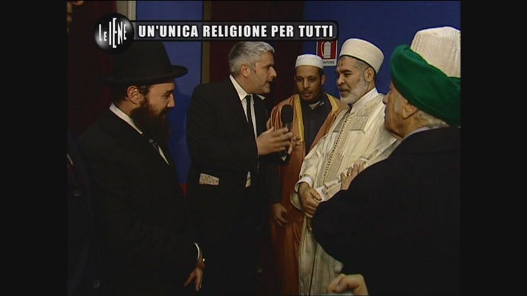 Enrico Lucci al forum delle religioni fa una proposta ai rapprentanti: un'unica religione per tutti