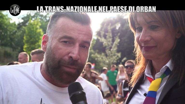Giacca più cravatta arcobaleno, Vladimir Luxuria è la nostra Iena d'eccezione al Gay Pride di Budapest contro l'escalation omofoba del governo di Viktor Orban che ha vietato quest'anno di parlare di omosessualità o cambio di genere ai minorenni in Ungheria. La accompagniamo in corteo fino a quando sale sul palco con un appello al premier ungherese: "Mi rivolgo a te Viktor Orban"