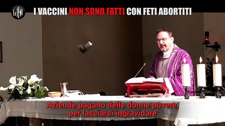 Il parroco di Cesena don Paolo Pasolini, come vedete, ha detto durante l'omelia una fake news che ha scatenato una bufera: "Gli ingredienti dei vaccini anti Covid sono tirati fuori da feti vivi abortiti. Delle aziende pagano delle donne povere per farsi ingravidare". Alice Martinelli è andata a parlarne con il prete. Lui prova a difendersi e alcuni suoi fedeli se la prendono con noi