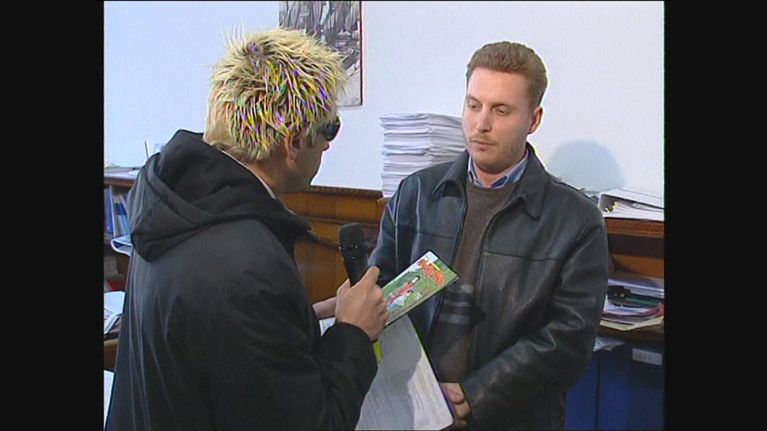 La Iena Andrea Pellizzari incontra l'assessore Camillo Pilati in seguito alla pubblicazione di un fumetto per bambini sulla caccia