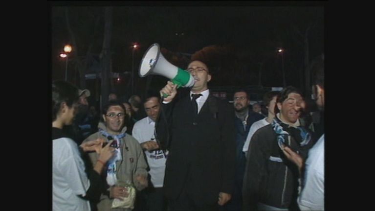 I tifosi della Lazio fanno cori razzisti contro i giocatori di colore. Peppe Quintale con l'aiuto di alcune Iene fa diventare di colore i tifosi della Lazio