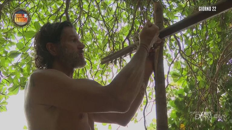 Subito dopo essersi svegliati, i concorrenti cercano altra legna e creano un riparo per il fuoco, mentre Joe suona la chitarra.