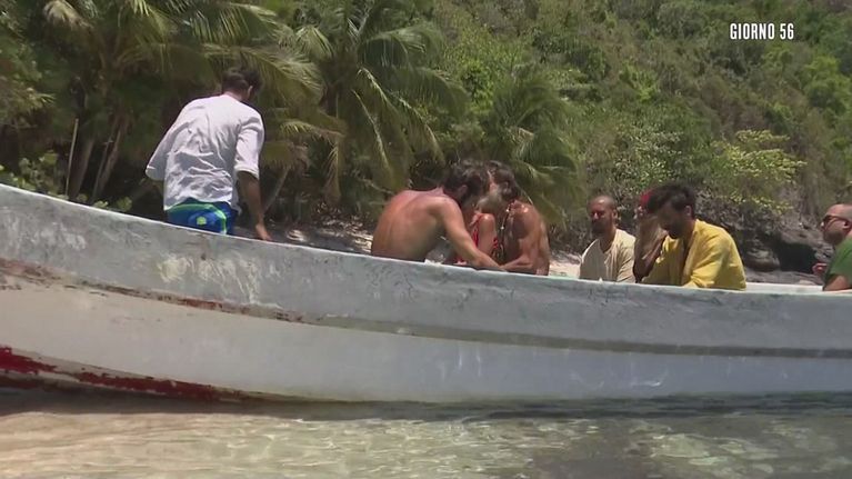 Dopo aver sistemato i loro sacchi, i Naufraghi salgono a bordo di una barca e raggiungono la Tana dei Serpenti.