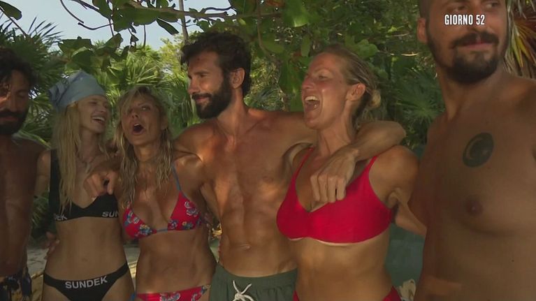 Al termine della diretta, i Naufraghi tornano su Playa Dos e festeggiano il loro traguardo.
