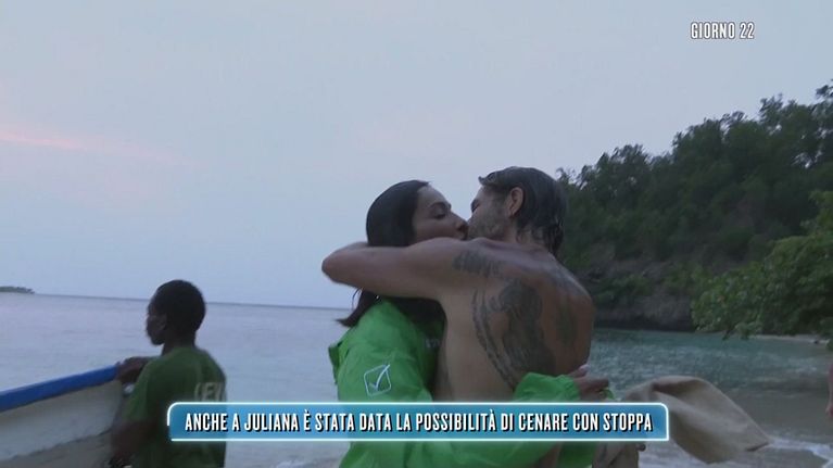 Stoppa riabbraccia la sua Juliana su Playa Espinada. Il loro incontro commuove il gruppo di Naufraghi.