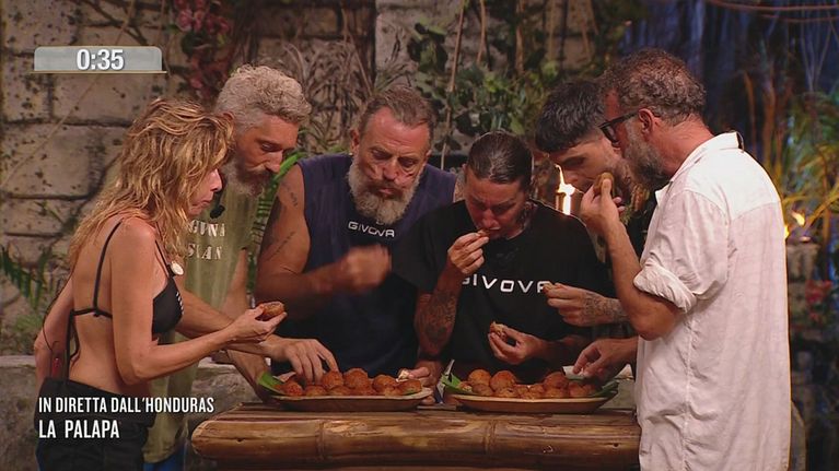 I naufraghi vincenti si godono la gustosa ricompensa: le polpette di melanzane.