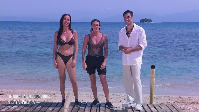 Antonella Mosetti e Cristina Plevani raggiungono Playa Palapa a nuoto e conoscono Pierpaolo Pretelli.