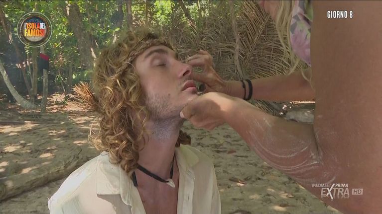 I Naufraghi approfittano della tranquillità mattutina per fare dei massaggi e commentare insieme la spiacevole situazione che si è venuta a creare a causa del furto di cibo.