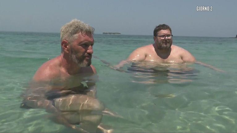 Durante un momento di relax in mare, i due Naufraghi commentano l'equilibrio precario presente all'interno del gruppo dei Giovani.
