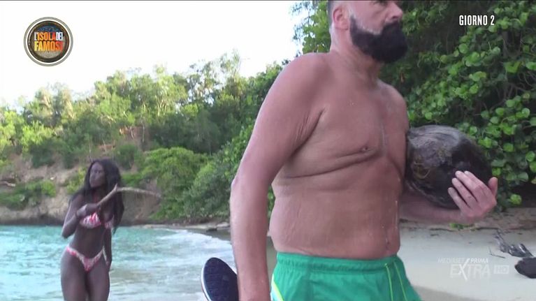 Peppe e Khady aprono un cocco