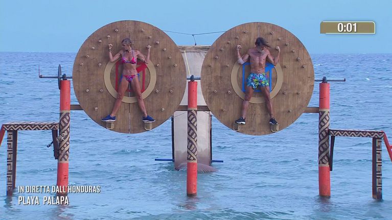 Matilde ed Edoardo stoppa si sfidano nella prova dell'uomo vitruviano e chi vincerà sarà il primo finalista dell'Isola dei Famosi.
