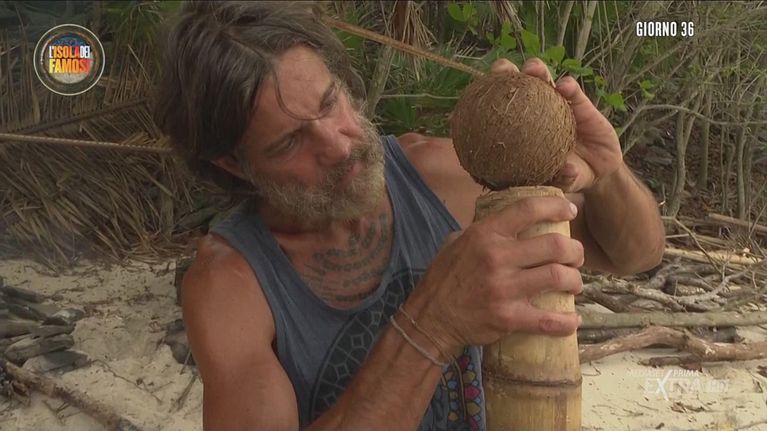 Durante l'apertura del cocco, i due Naufraghi ammettono di non riuscirne più a mangiare grandi quantità in quanto.