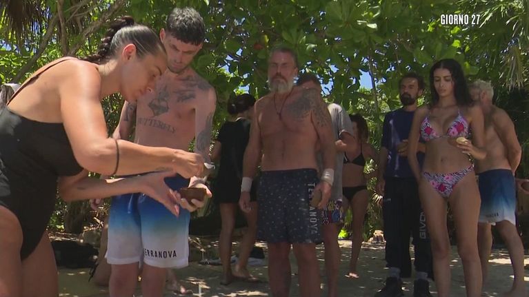 In qualità di Leader, Teresanna porziona il riso e lo distribuisce a tutti i suoi compagni d'avventura.