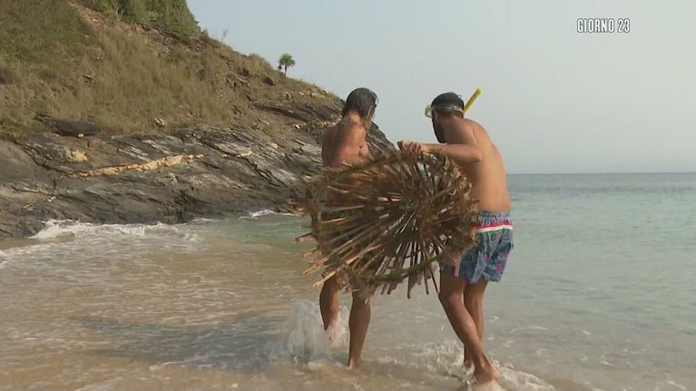 Dopo aver costruito la nassa, Stoppa e Aras provano a gettarla in mare per testarla.
