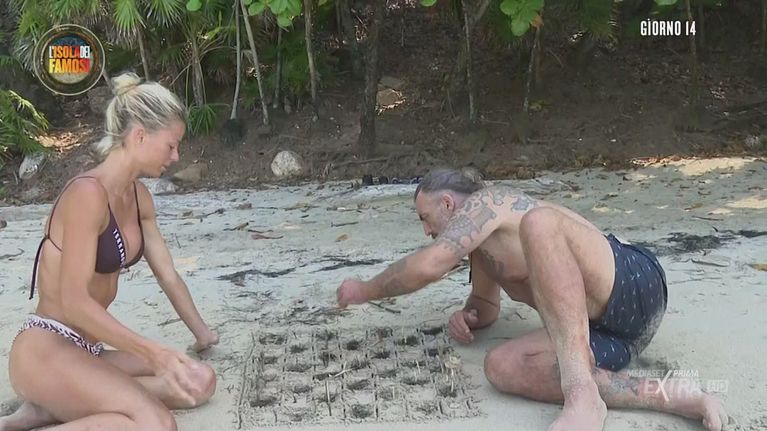 I due Naufraghi decidono di ingannare il tempo dando il via a una partita a scacchi in riva al mare, usando materiali trovati sull'Isola.