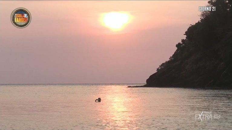 Munito di pinne, maschera, boccaglio e rete, Aras si cimenta in una sessione di pesca al tramonto. Joe, invece, cattura un piccolo pesce.