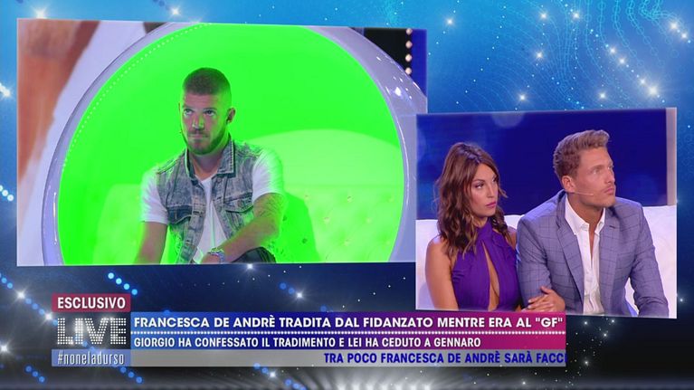Francesca, intuendo la presenza del suo ormai ex in studio, si dimostra subito pungente e sarcastica