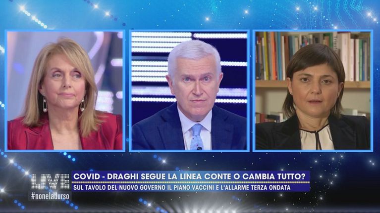 In studio Maurizio Belpietro, Debora Serracchiani, Antonella Boralevi e Alessandro Cecchi Paone.