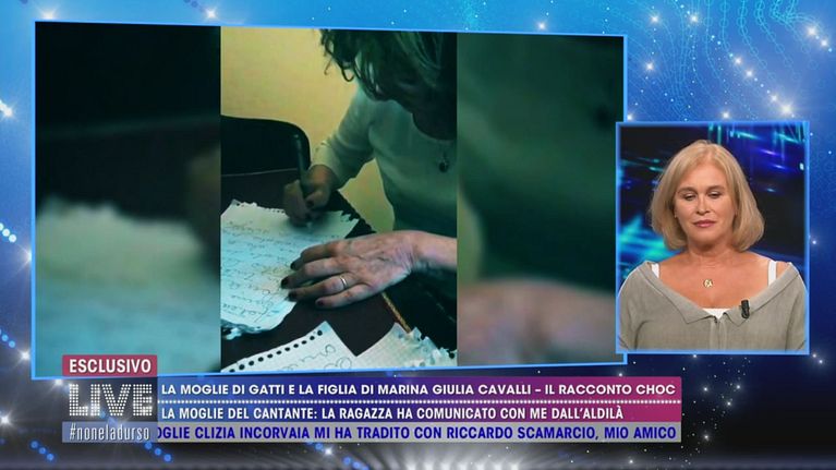 La moglie dell'ex cantante dei Ricchi e Poveri è riuscita a mettersi in contatto, attraverso la scrittura automatica, con Arianna la figlia dell'attrice. In studio non tutti sono d'accordo con questa tecnica.