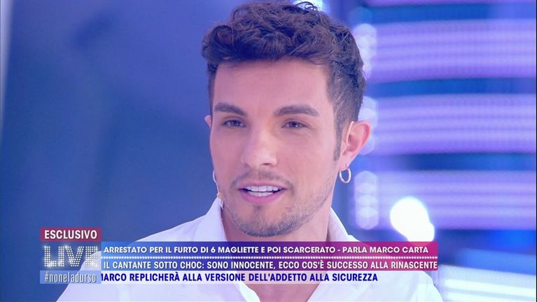 Marco Carta parla in diretta per la prima volta dopo lo scandalo del suo arresto per il presunto furto di alcune magliette in un noto grande magazzino di Milano.
