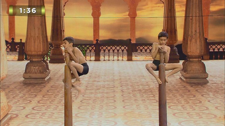 Gli Incredible Mallakhamb dovranno completare 5 sequenze di movimenti sincronizzati su due pali di Mallakhamb entro 2 minuti.