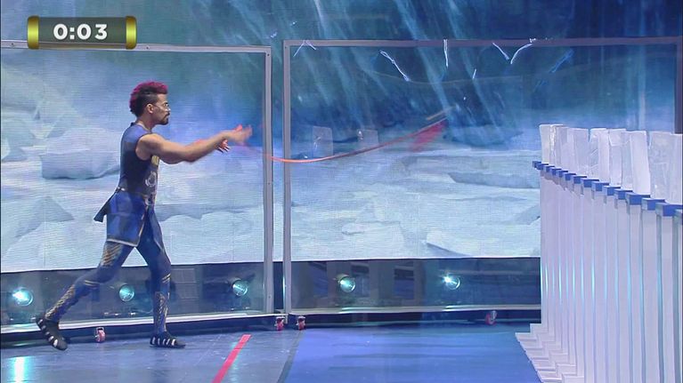Bensei Kennedy tenterà di rompere almeno 10 blocchi di ghiaccio con il Meteor hammer in un minuto.