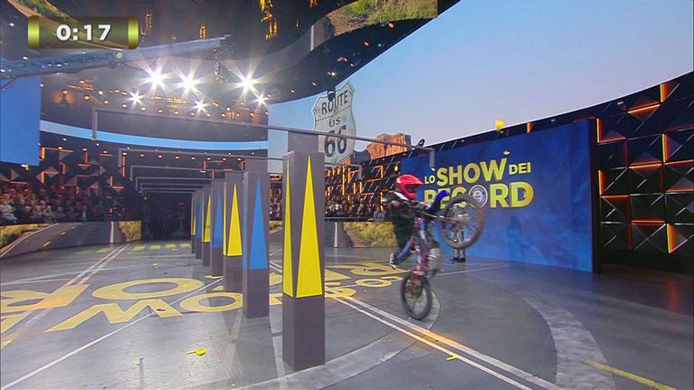 Il giovanissimo Julio dovrà battere un record scoppiettante: scoppiare almeno 10 palloncini impennando con una moto elettrica in 30 secondi.