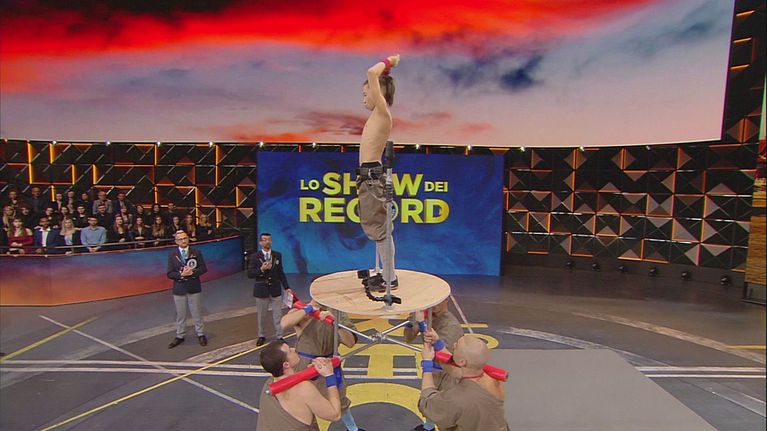 Tian Jane proverà a battere un esotico record: eseguire almeno 10 flick all'indietro consecutivi su una pedana sollevata da 4 persone.