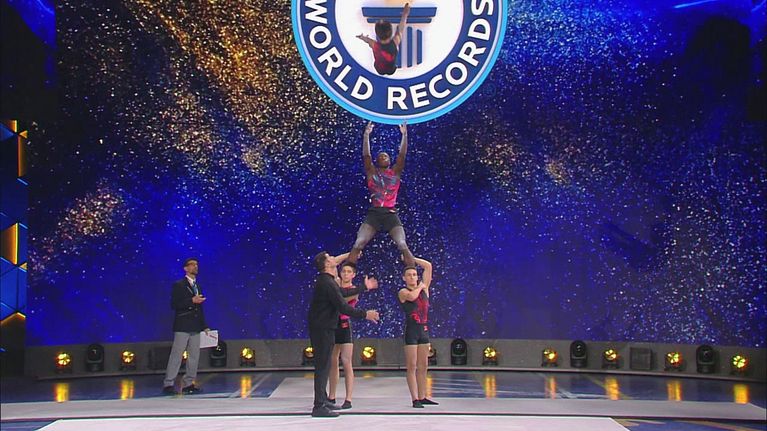 Gli Acro Clube De Maia dovranno eseguire almeno 12 lanci e riprese consecutivi su di una piramide umana.