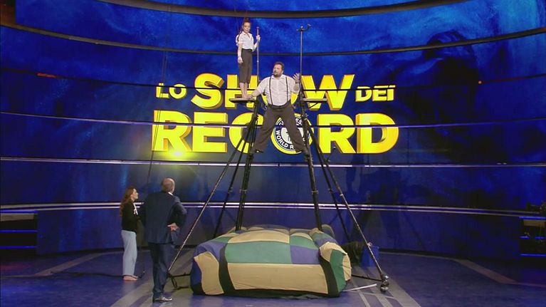 Massimiliano Rossetti e Roisin Morris, lui italiano e lei irlandese, vogliono battere il record di: eseguire più di 16 salti mortali sul quadro coreano in un minuto.