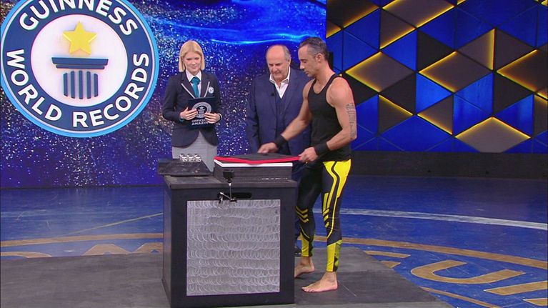 Silvio Sabba deve saltare almeno 101,3 cm partendo da terra e atterrando sopra delle lampadine.