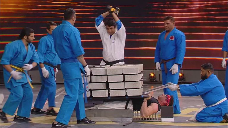 Vispy Kharadi viene dall'India ed è già un famoso recordman. Il record da battere è: farsi rompere addosso almeno 774.99 Kg di blocchi di cemento sdraiato su un letto di chiodi.