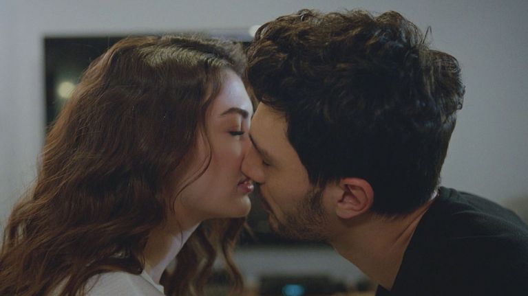 Esra e Ozan condividono un momento d'intimità.