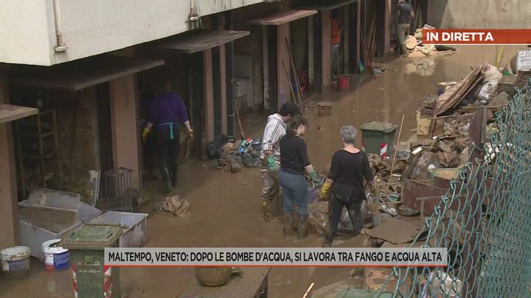 Maltempo, Veneto: dopo le bombe d'acqua, si lavora tra fango e acqua alta