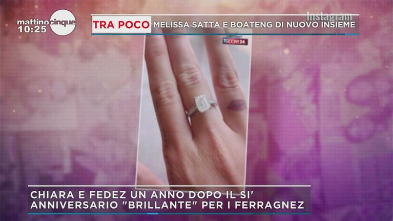 Un anno d'amore per la coppia più social d'Italia, un anello da favola regalato per l'occasione dal rapper a sua moglie.