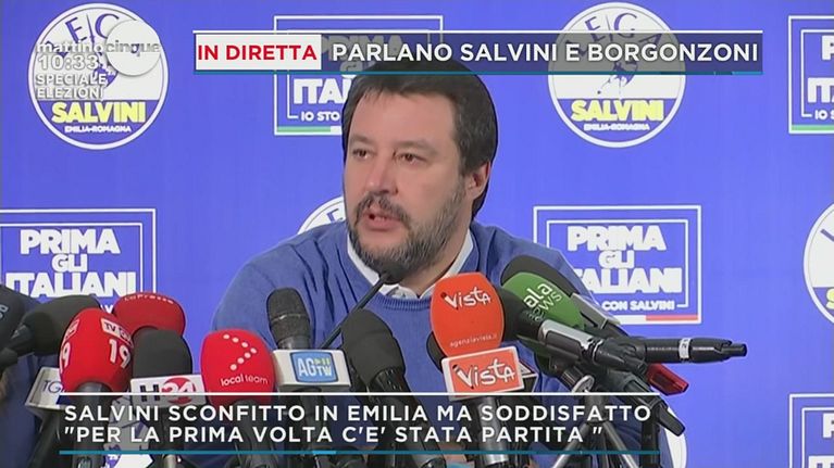 Matteo Salvini si ritiene comunque soddisfatto dal risultato delle elezioni, è vero che in Emilia Romagna sono stati sconfitti comunque è stata una bella lotta.