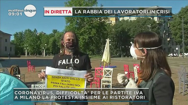 Protesta delle Partite Iva a Milano con sedie e tende insieme ai ristoratoriVogliamo ripartire con dignità